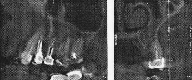 При рентгеновском обследовании в стоматологической клинике случайно обнаружили грубые подушковидные утолщения слизистой в базальных и вентральных отделах левой верхнечелюстной полости. При этом у зуба 2.4 расширена периапикальная щель, разрежение костной ткани у верхушки корня, у зуба 2.5 у верхушки корня небольшая гранулёма, над ней разрушена компактная пластина дна верхнечелюстной полости, у верхушек корней зуба 2.7 гранулёмы, компактная пластина дна верхнечелюстной полости над гранулёмами местами не прослеживается.