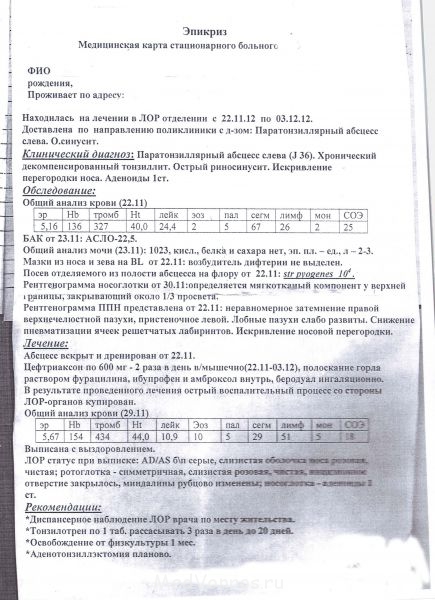 Спасибо за ответ. Я не знаю являются ли показания абсолютными... Я прикрепила эпикриз с больницы. Абсцесс появился впервые. Может Вы внесете ясность или это заболевание выходит за грани возможностей гомеопатов?