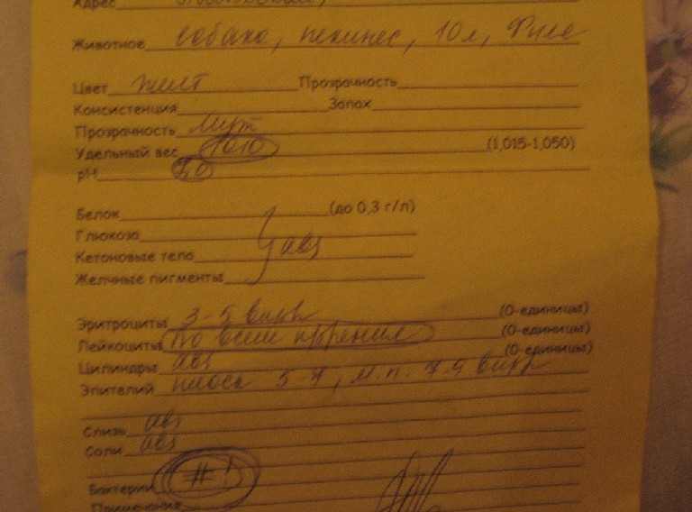 Моему пкинесу 10 лет, страдает мочекаменной болезнью, было сделано несколько операций за последние 3 месяцев, резали мочевой и две уретростомии. Последний анализ мочи показал, что опять появились соли Оксалата Са. Результат прикрепляю.