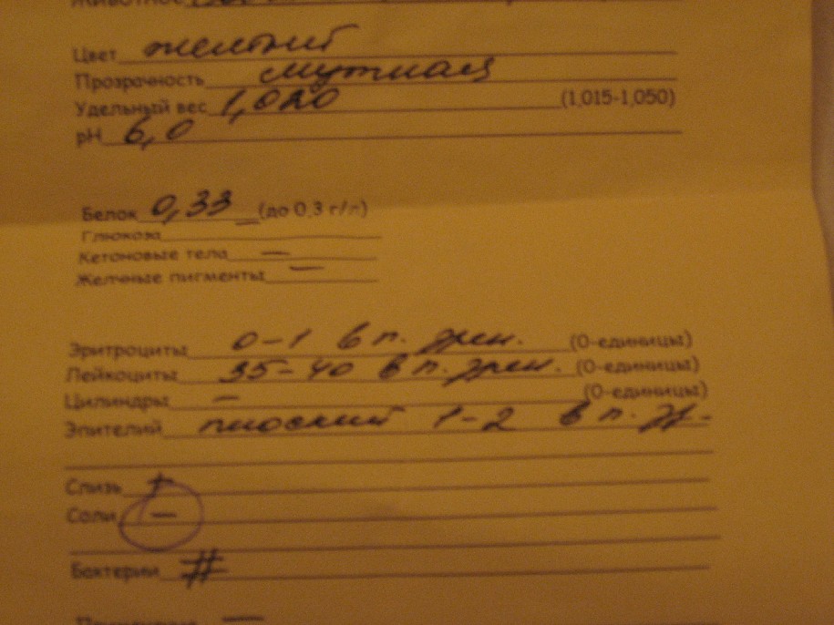 Это результат предпоследнего анализа мочи, за 3 дня до последней операции.